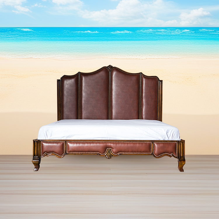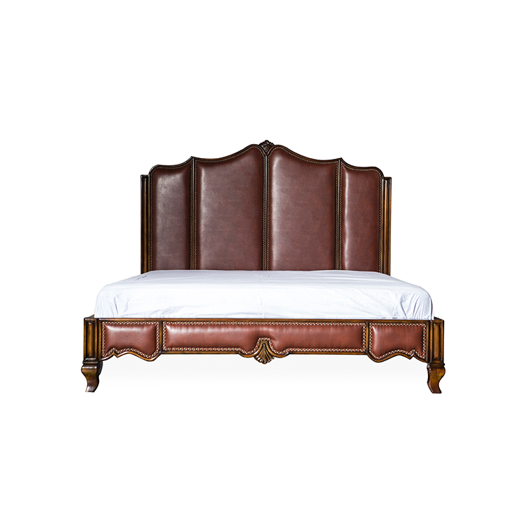 弧背皮床,主材为美国进口鹅掌楸实木,床身选用美国最流行的优质环保皮,增加了床头的舒适性,易于打理。床头的高度适合公寓户型,无床尾解决了视觉问题,而且床宽度的最小化更能适合小面积卧室的需要。