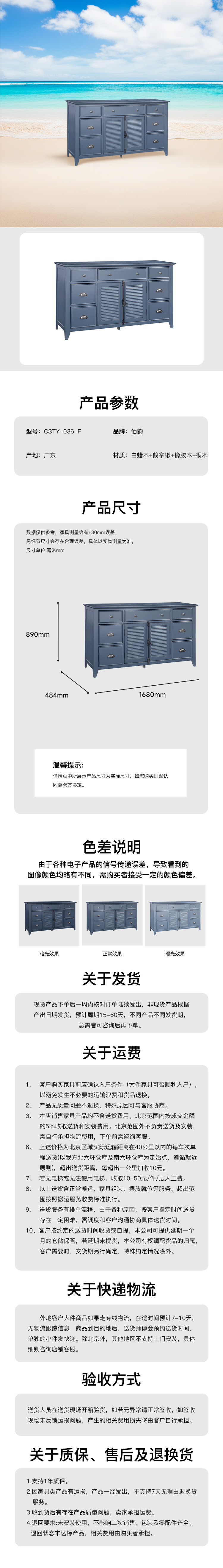 抽屉柜-海港晴空蓝主材白蜡木 CSTY-036-F