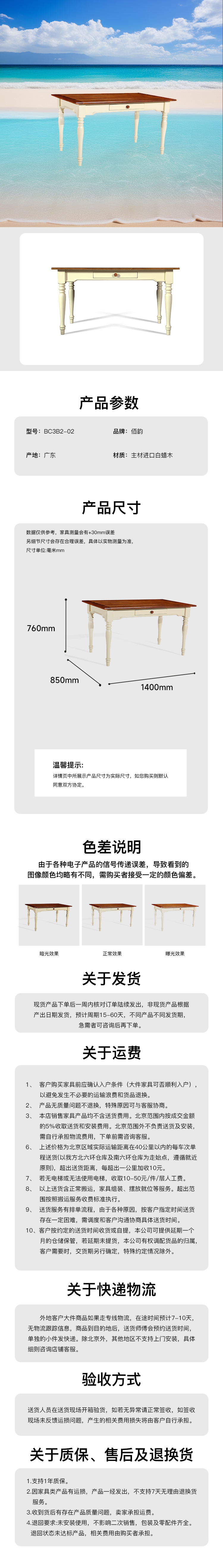 米勒餐桌-蜜蜂色/仿古白主材进口白蜡木 BC3B2-02