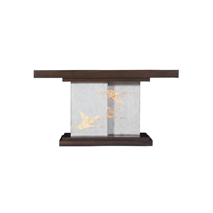 主材:黄杨木实木 造型漆、彩绘、不锈钢镜面