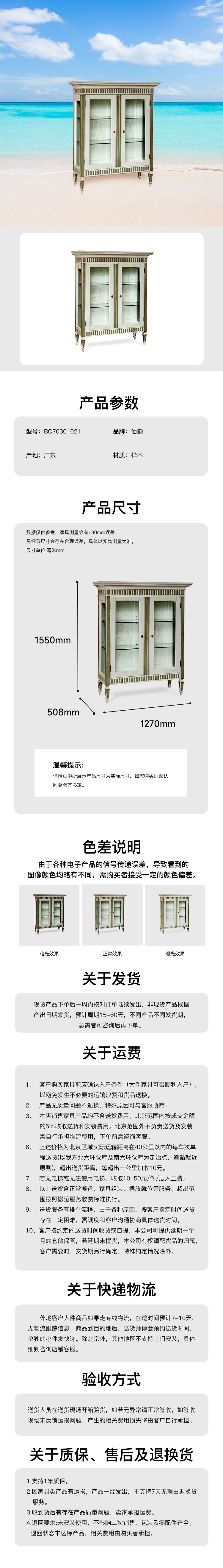 主材:*主材桦木实木 *桦木薄片饰面 *E1级MDF环保板 *背板贴彩纸 *饰条树脂材质 *锌合金铜色拉手