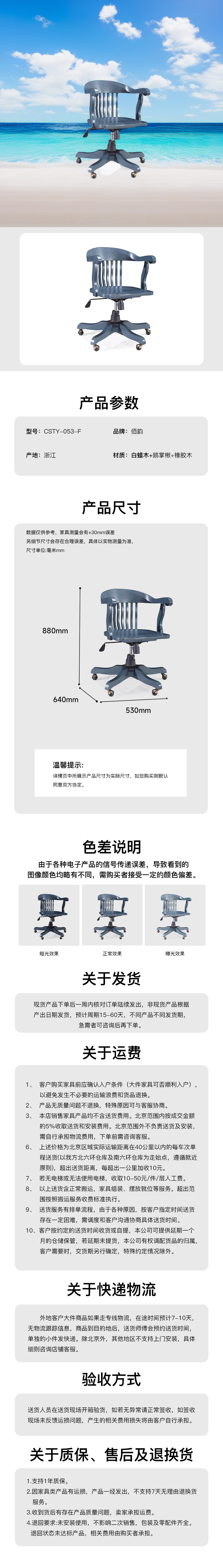 利文斯顿转椅-海港晴空蓝主材白蜡木 CSTY-053-F