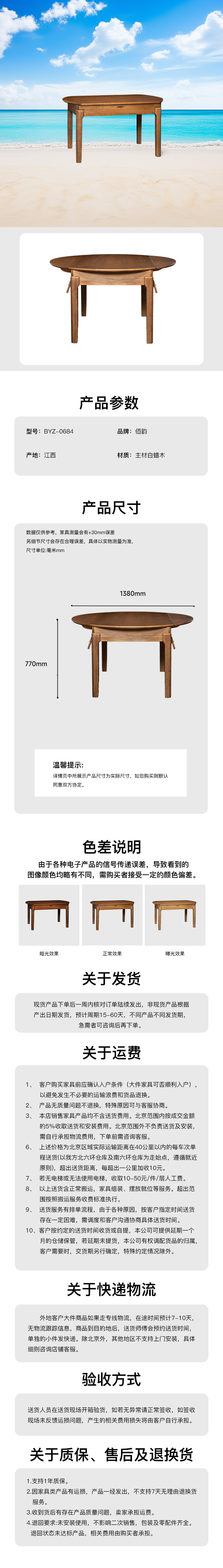 圆餐桌(1.38折叠-胡桃色-不含转盘)主材白蜡木 BYZ-0684