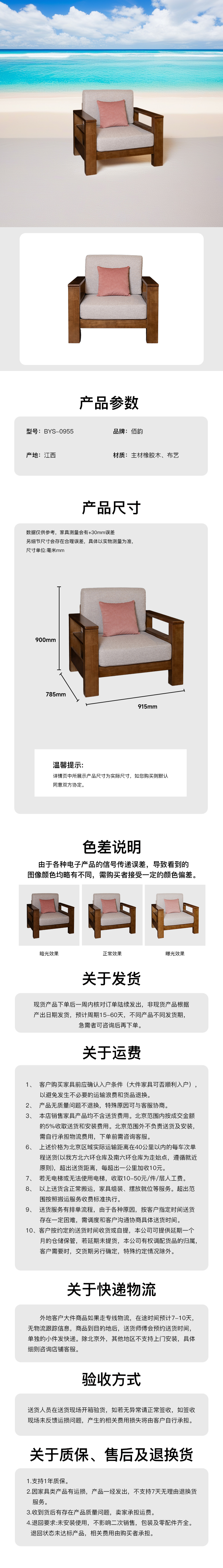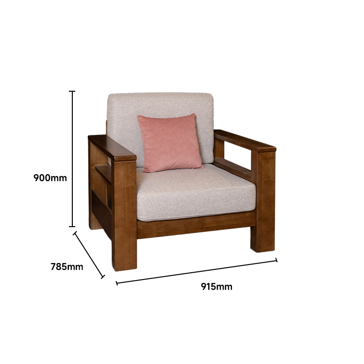 单人位沙发(胡桃色)主材橡胶木 BYS-0955