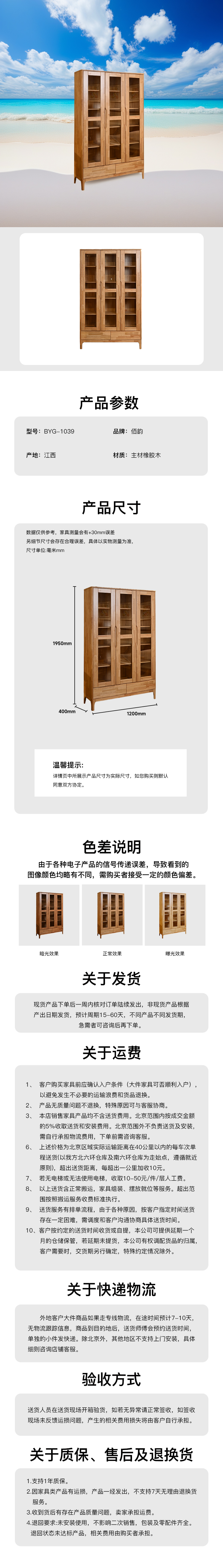 三门书柜(原木色)主材橡胶木 BYG-1039