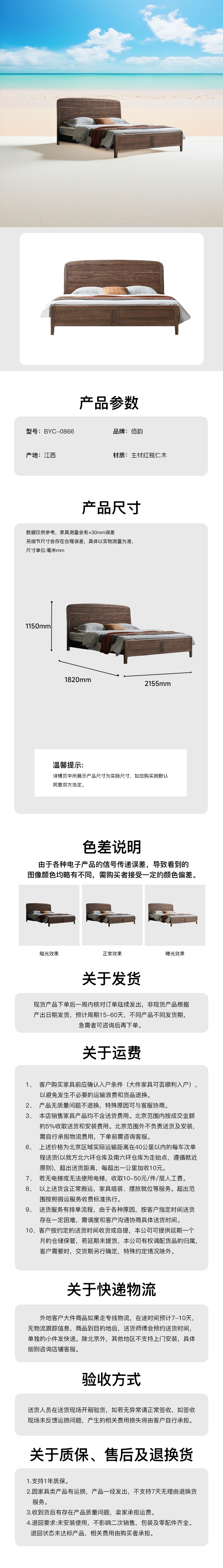 苔原实木床主材红榄仁木 BYC-0866