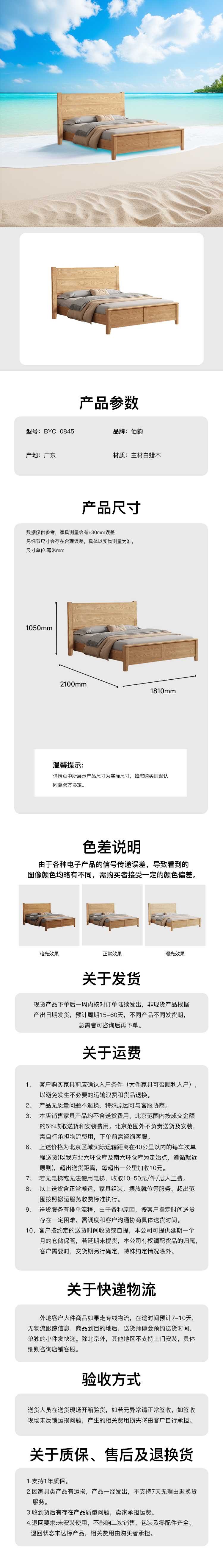 漫屿实木床(暖杏色)主材白蜡木 BYC-0845