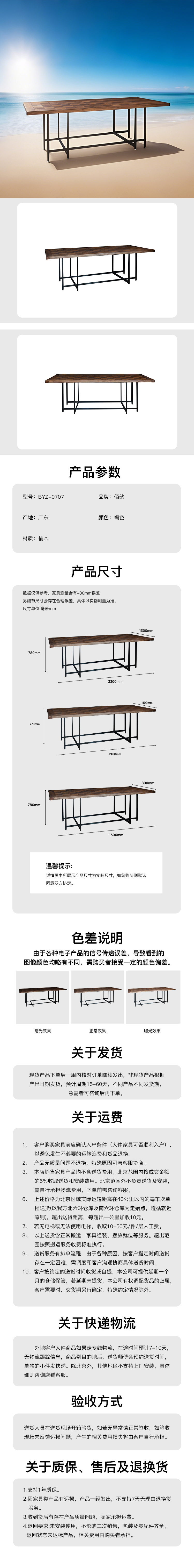 餐桌(3.3米)主材榆木拼花 BYZ-0707