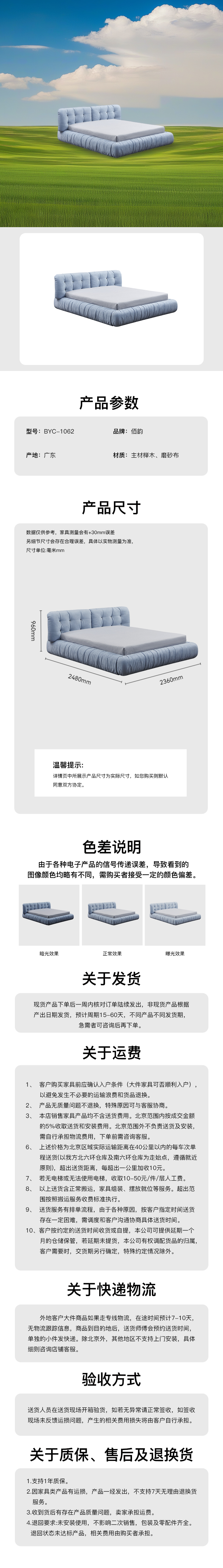 云朵双人床主材榉木、磨砂布 BYC-1062