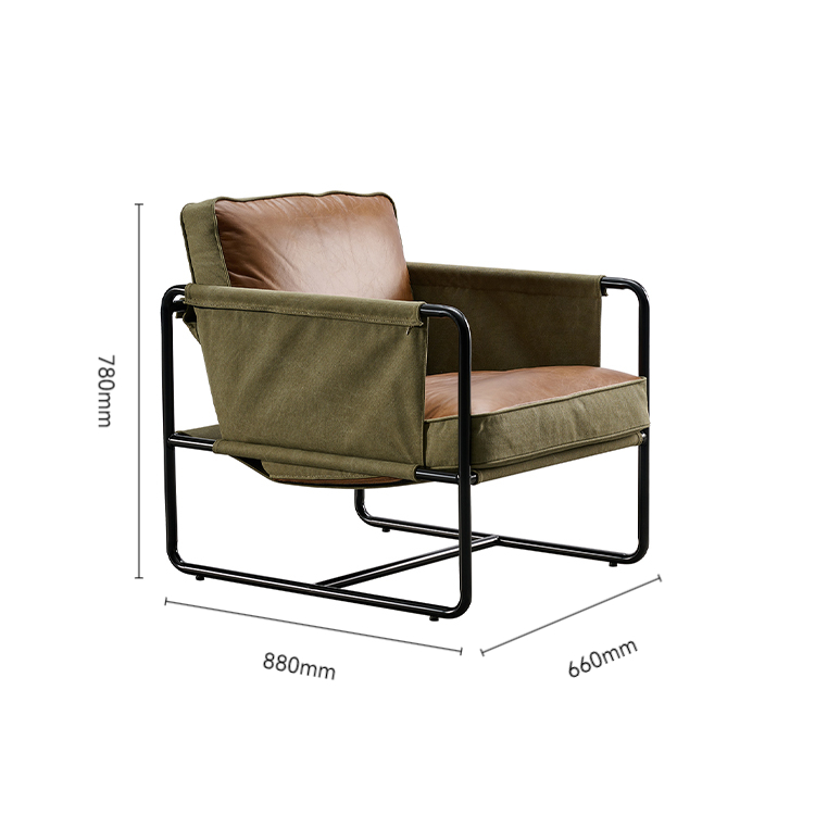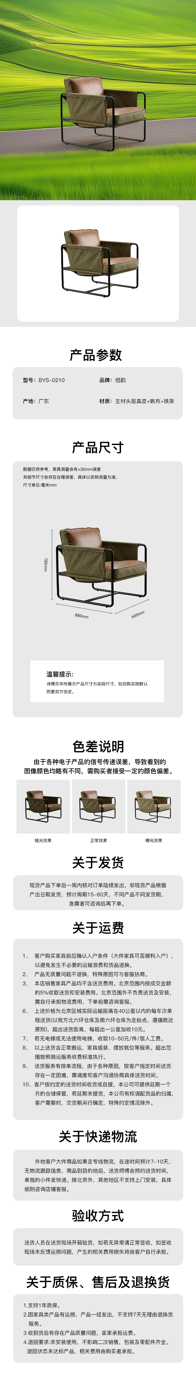 休闲沙发主材头层真皮+帆布+铁架 BYS-0210