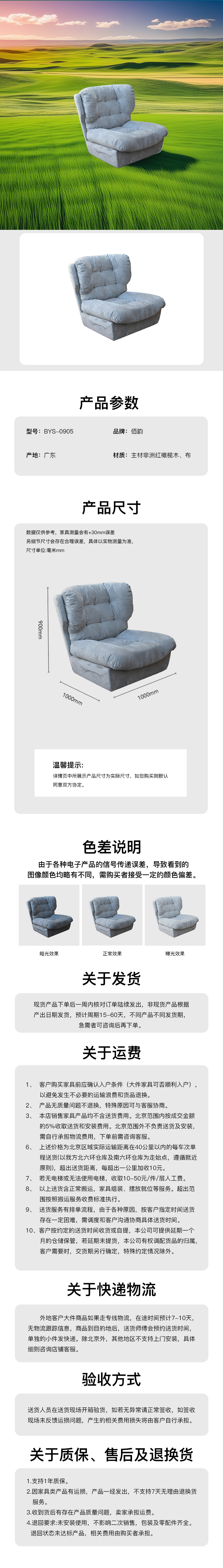 云朵单人位沙发主材非洲红橄榄木、布 BYS-0905