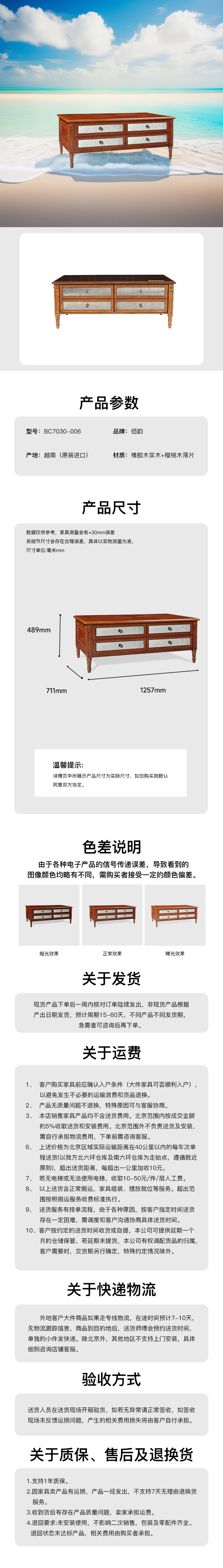 主材:橡胶木实木+樱桃木薄片+MDF+树脂