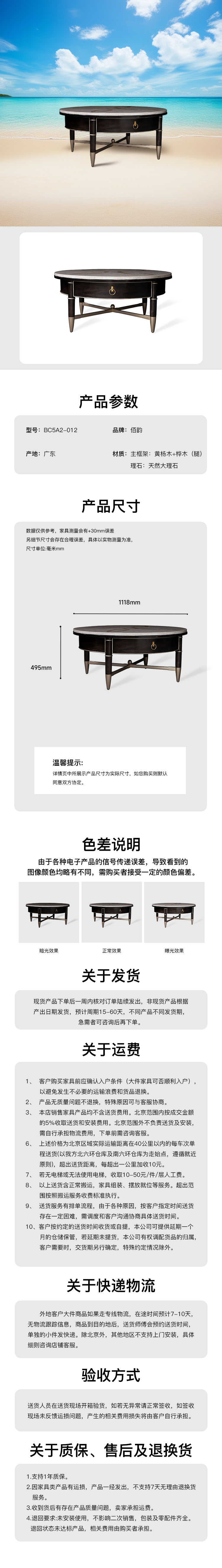 主材:主框架:黄杨木+桦木(腿) 辅料:杂木 理石:天然大理石