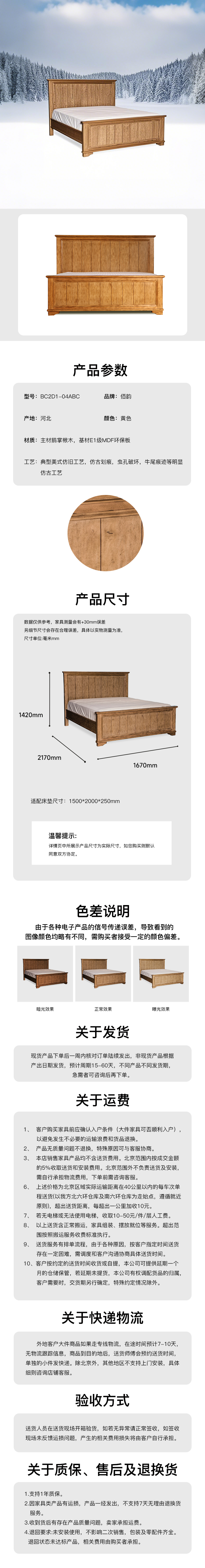 美式双人板床主材鹅掌楸木 BC2D1-04ABC