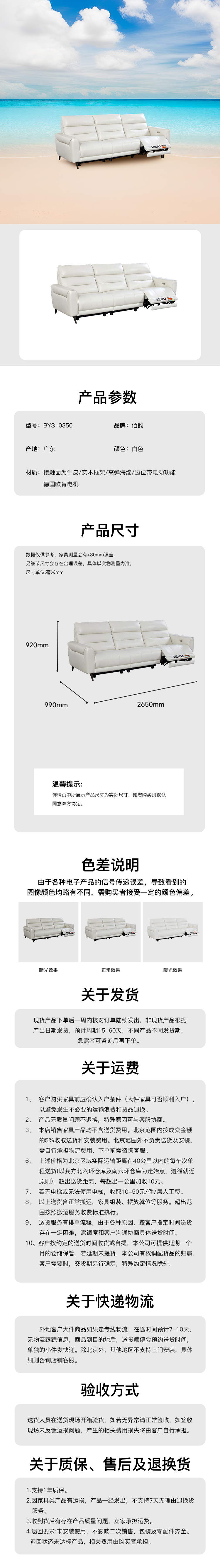 牛皮电动三位沙发接触面为牛皮 BYS-0350