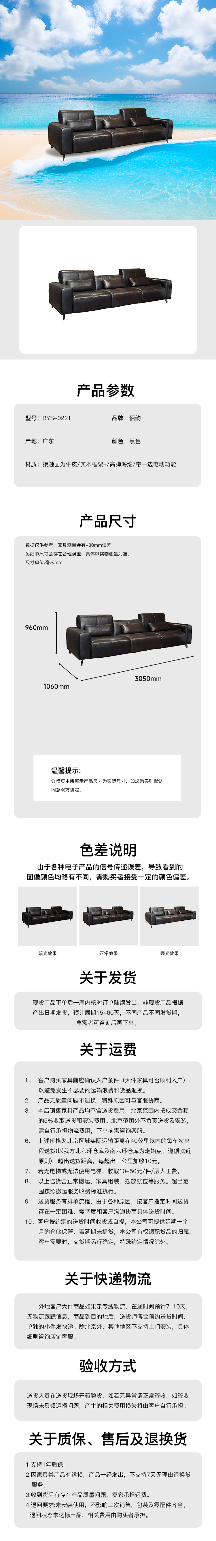 牛皮四位沙发接触面为牛皮 BYS-0349