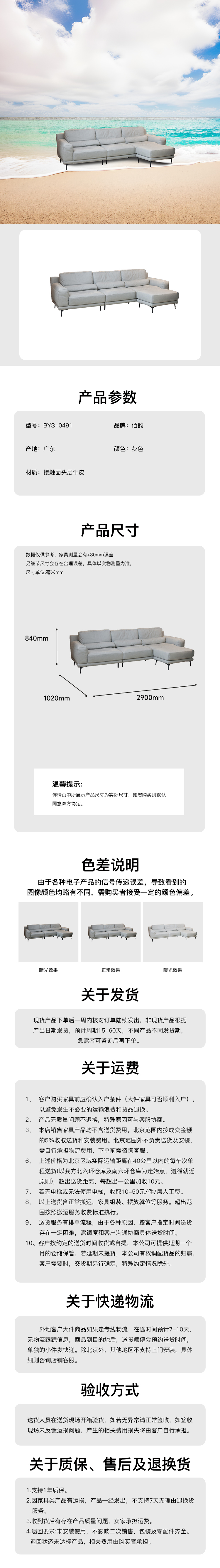 牛皮三位沙发接触面头层牛皮 BYS-0491