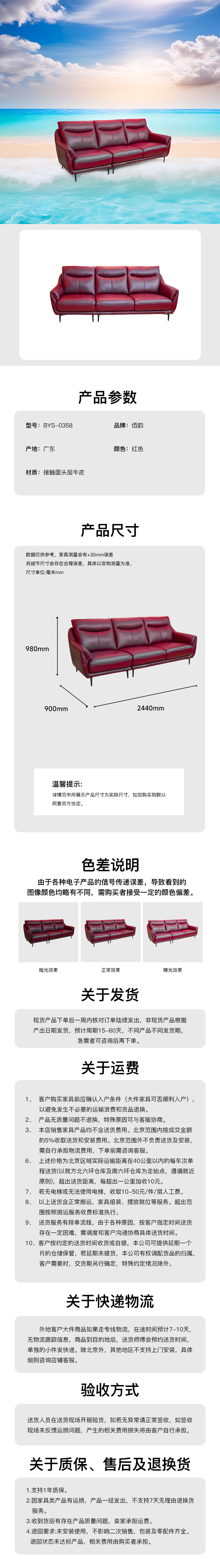 牛皮三位沙发接触面头层牛皮 BYS-0358