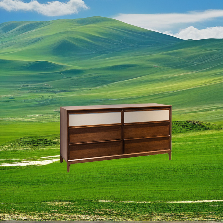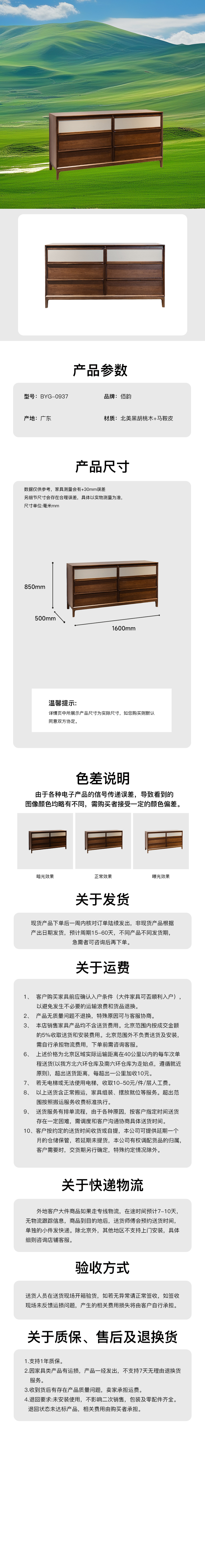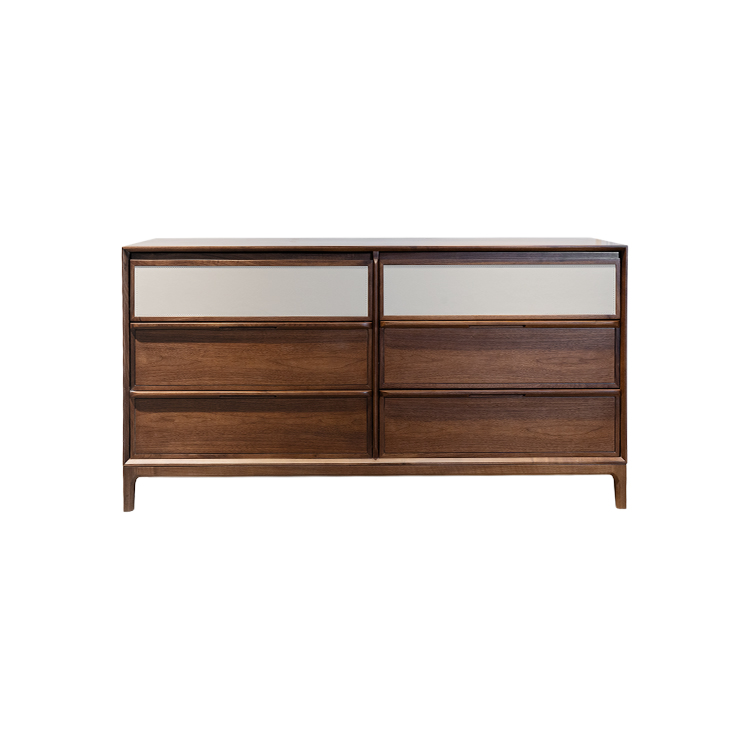 六斗柜北美黑胡桃木+马鞍皮 BYG-0937