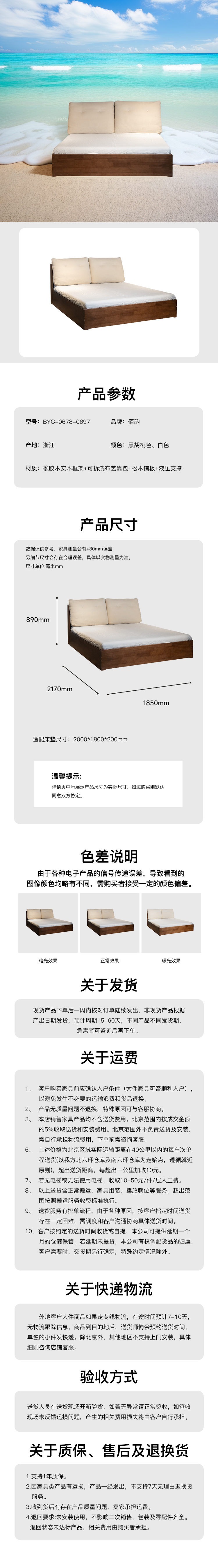 1.8m箱床-胡桃色(白靠包)橡胶木实木 BYC-0678-0697